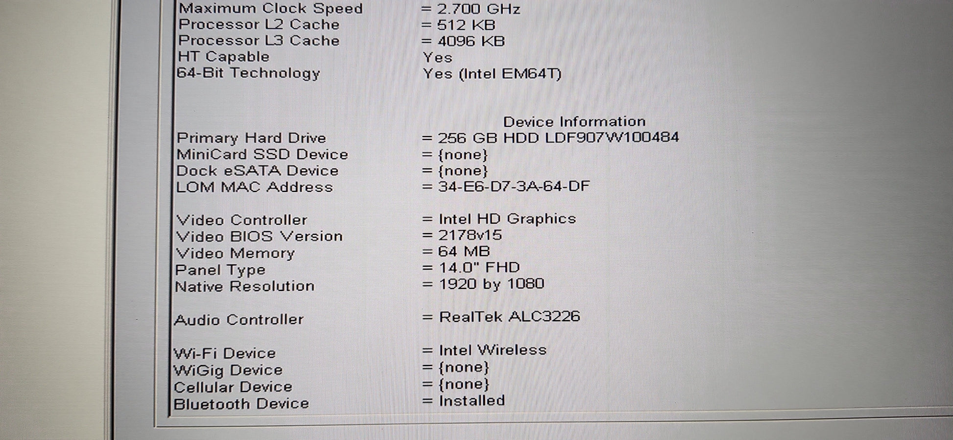 DISQUE DUR: | 256 GO SSD |